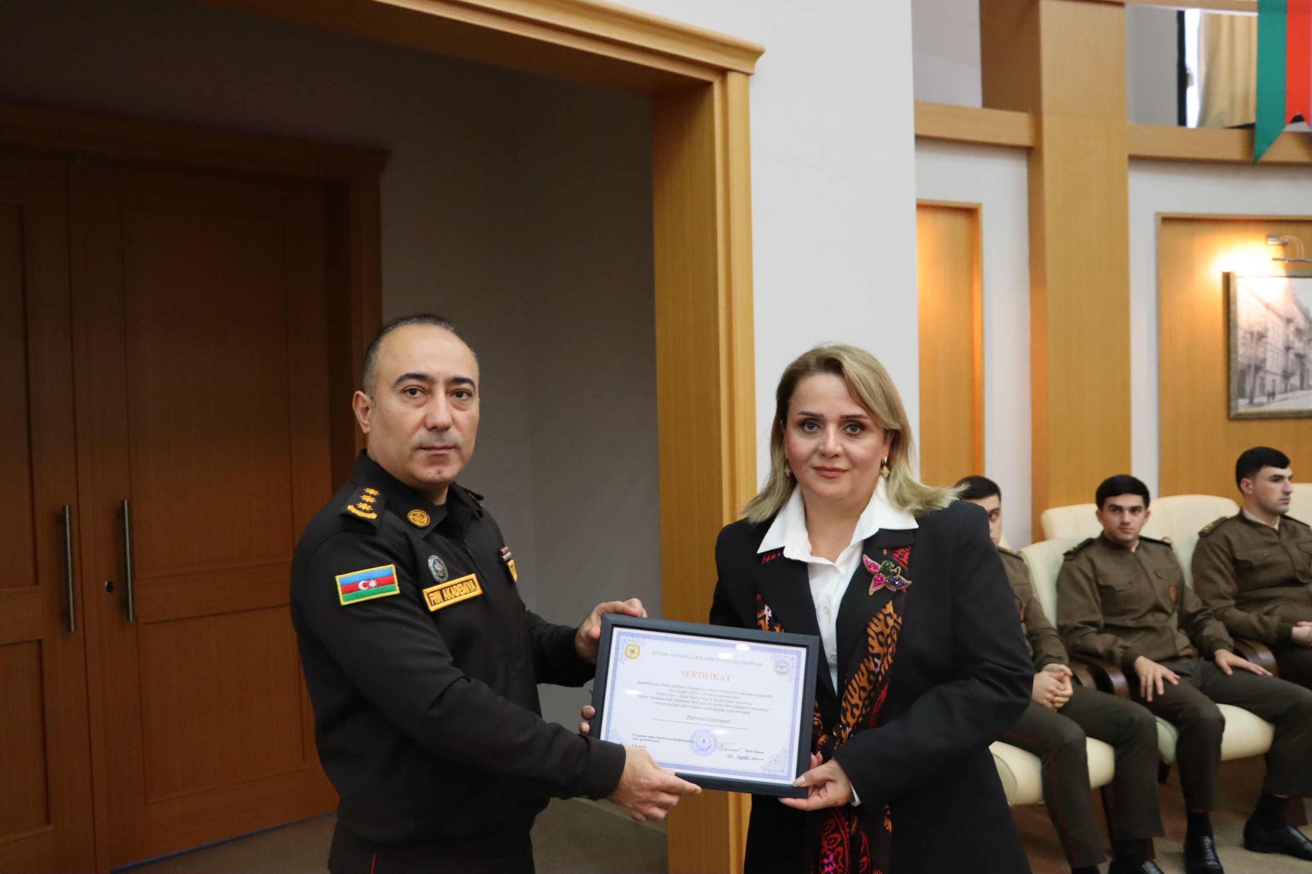Tədbirdə Milli Məclisin deputatı, tarix elmləri doktoru Vasif Qafarov, Daxili Qoşunların Hərbi İnstitutunun rəisi general-mayor Elçin Məmmədov, Milli Müdafiə Universitetinin Hərbi İdarəetmə İnstitutunun rəisi polkovnik Elnur Əsgərli, Dövlət Sərhəd Xidmətinin Akademiyasının rəisi general-mayor Ramin Bağırov, eləcə də digər xüsusi təyinatlı təhsil müəssisələrinin rəhbər və nümayəndələri iştirak ediblər.